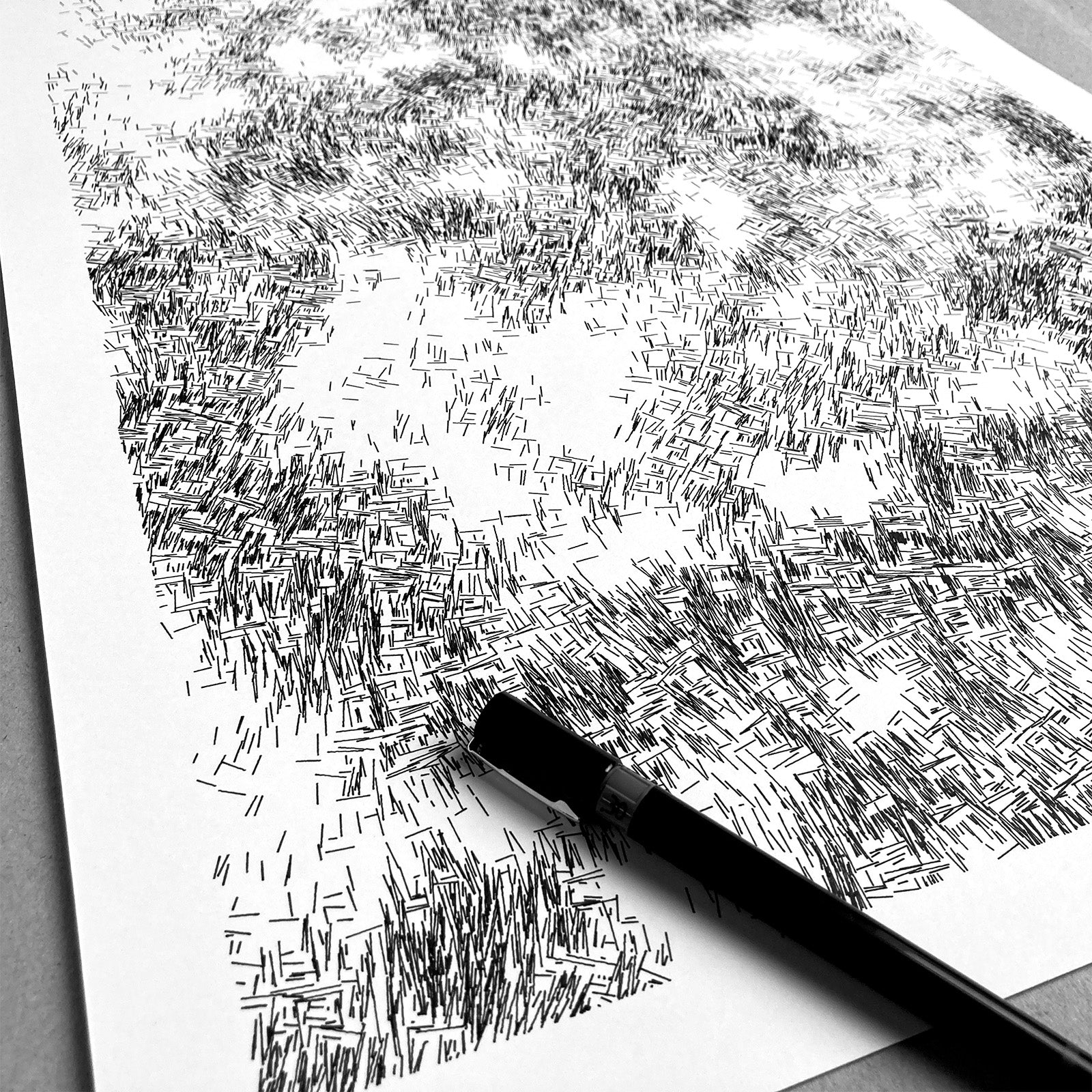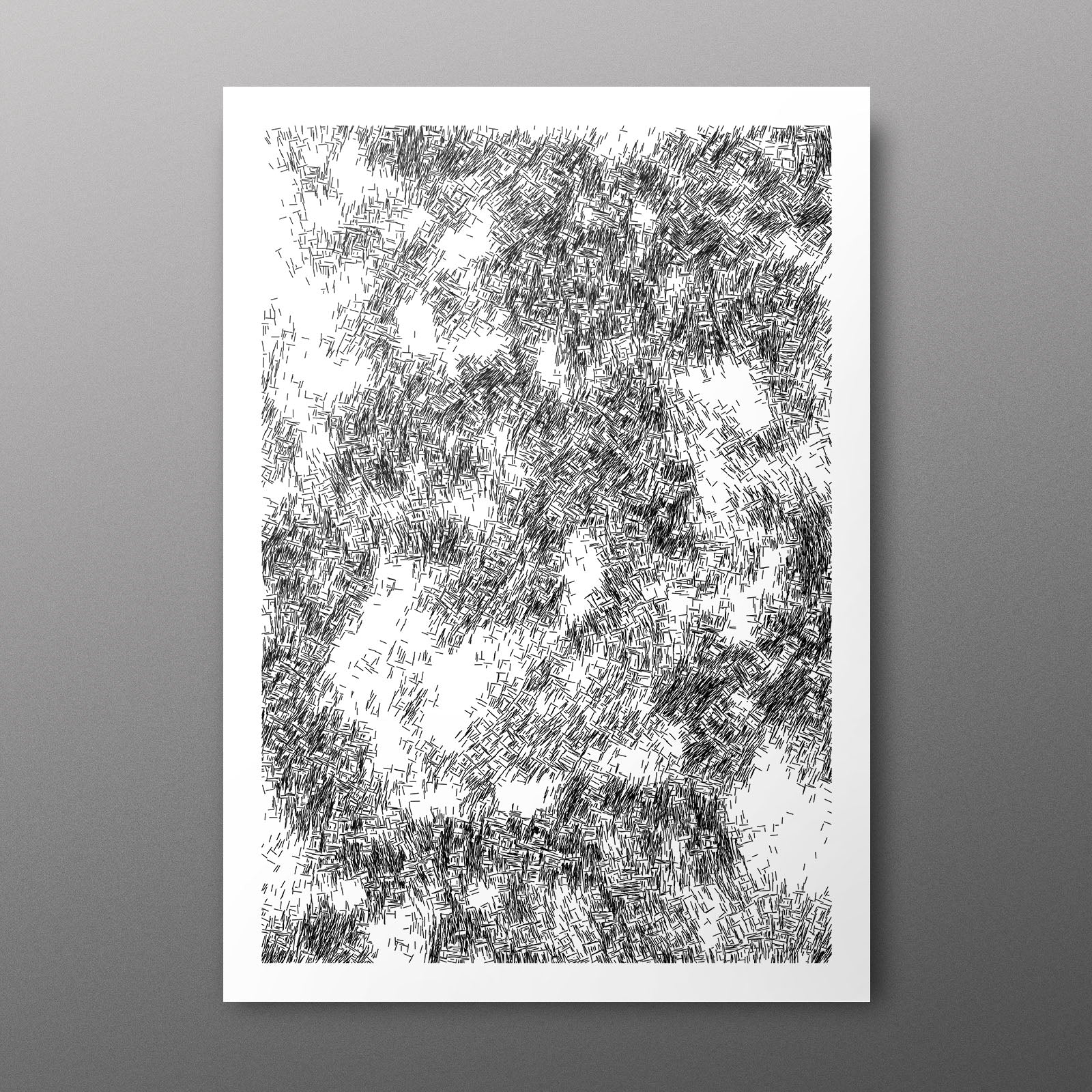 This artwork is the carefully crafted and selected output of a generative algorithm. This pen plot is made using black archival ink on A2 (420mm x 594mm - 16.5 x 23.4 inches) 220gsm white acid-free paper.
