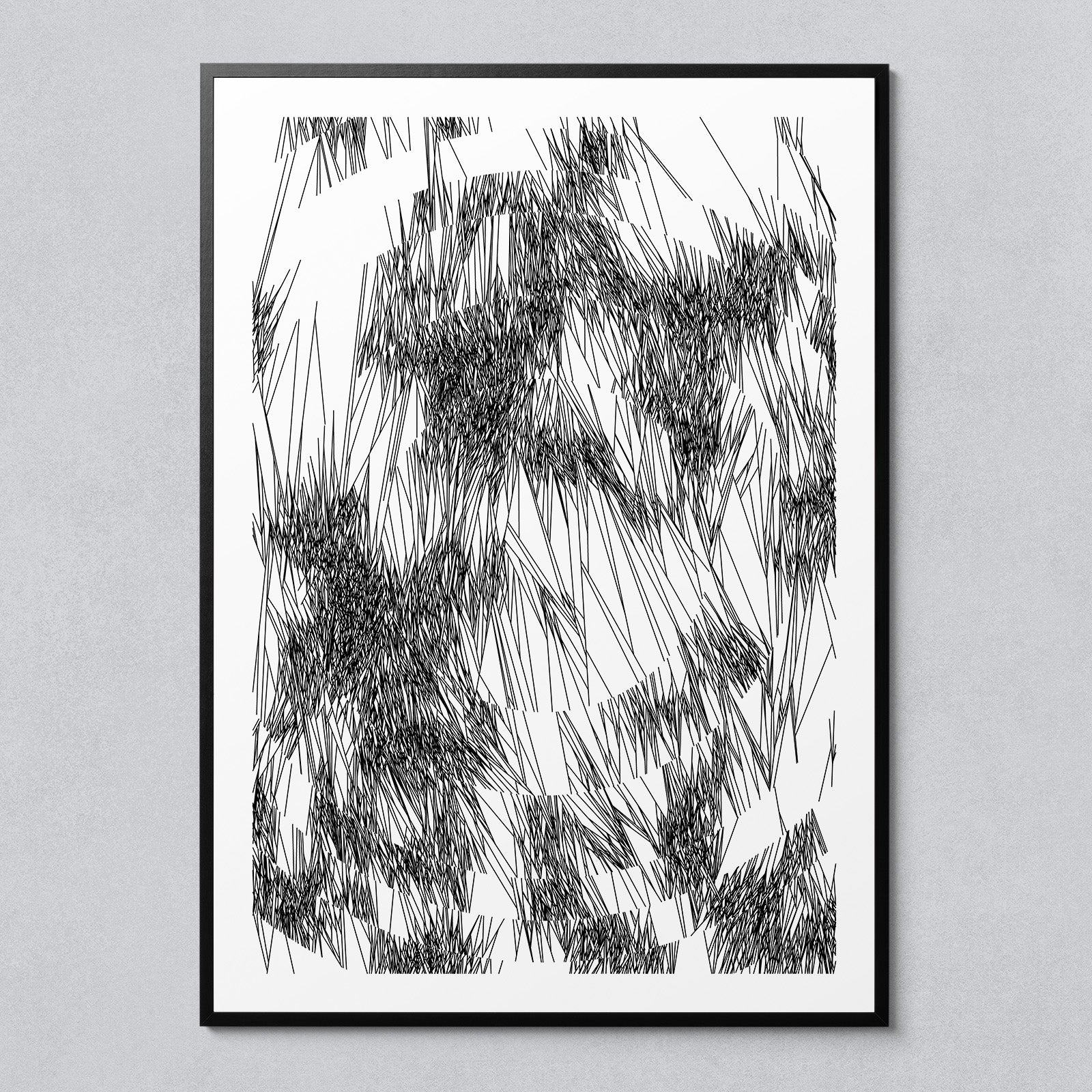 This artwork is the carefully crafted and selected output of a generative algorithm. This pen plot is made using black archival ink on A2 (420mm x 594mm - 16.5 x 23.4 inches) 220gsm white acid-free paper.